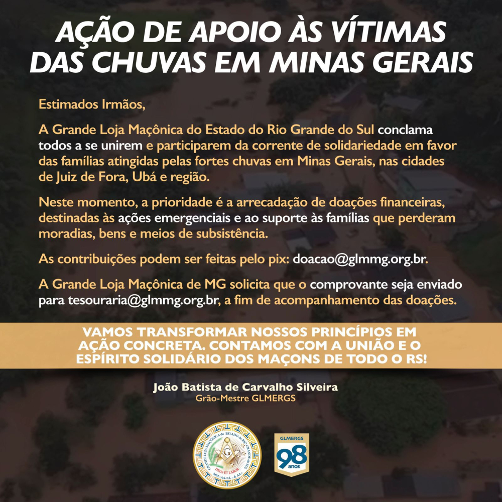 Notícias GLMERGS prestigia aniversário de 63 anos da Grande Loja do Mato Grosso do Sul No dia 29 de novembro, ocorreu a assembleia geral e a festa de aniversário de 63 anos da Grande Loja Maçônica do Estado do Mato Grosso do Sul - GLEMS, em Campo Grande. A Grande Loja...